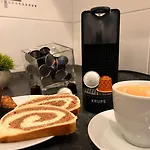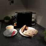 Oprócz urządzenia do parzenia kawy/herbaty, obiekt noclegowy wyposażony jest w pełnowymiarowej kuchni z czajnikami elektrycznymi, lodówką i tosterem. Apartament Bodensee Strandlaeufer Quartier o powierzchni 44 m^2 leży o rzut kamieniem od dworca autobusowego Daisendorf Saentisblick.